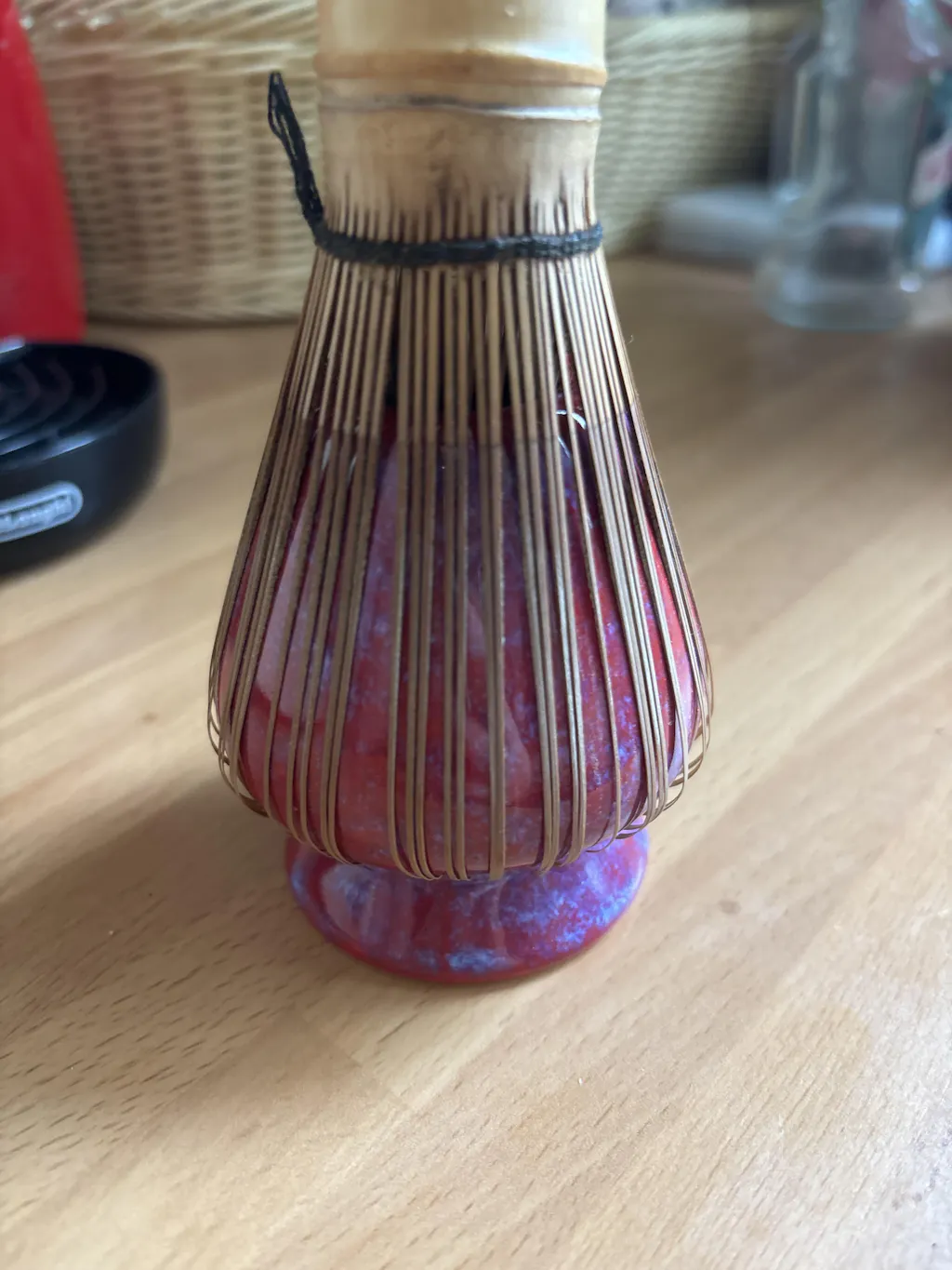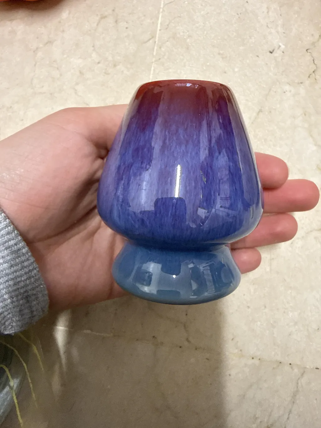 El soporte para chasen es ese accesorio que no sabías que necesitabas, pero que cambia el juego. Hecho de cerámica, está diseñado para que tu batidor de bambú se seque correctamente y mantenga su forma perfecta, alargando su vida útil como un pro. Sus colores, que evocan un cielo al atardecer con tonalidades suaves y cálidas, lo convierten en una pieza tan funcional como decorativa. Es el detalle perfecto para quienes buscan cuidar sus accesorios con estilo y añadir un toque único a tu ritual de matcha.